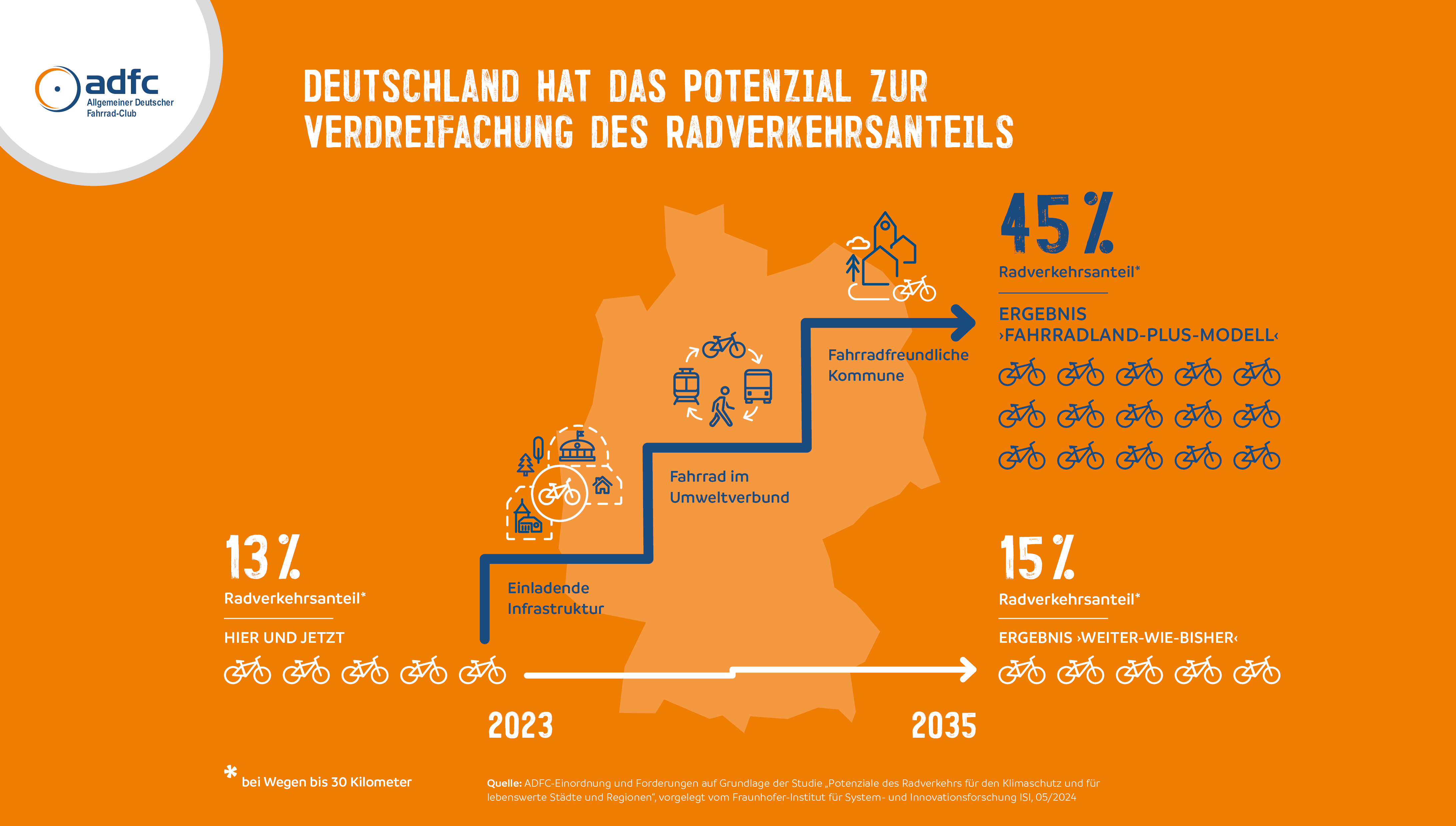 ADFC-Infografik: Deutschland könnte den Radverkehr verdreifachen