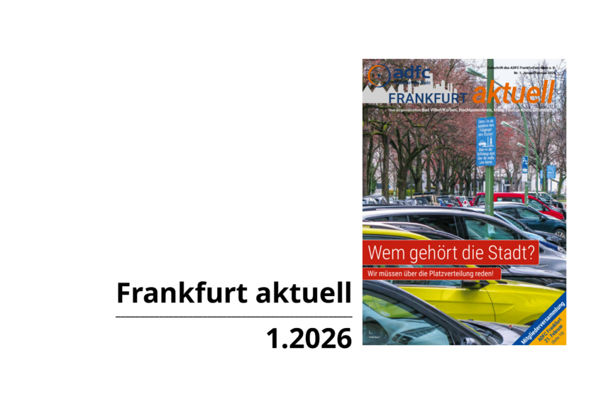 FRANKFURT aktuell, die Mitgliederzeitschrift des ADFC Frankfurt am Main e. V., erscheint alle zwei Monate in einer Auflage von ca. 5.200 Exemplaren. FRANKFURT aktuell informiert über Aktivitäten des ADFC, über Verkehrspolitik und Entwicklungen rund ums Rad in Frankfurt und anderswo.